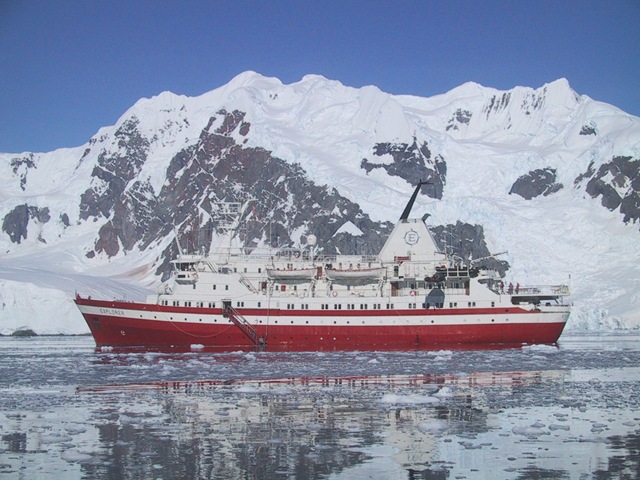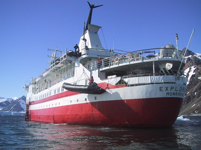 We took this ship to Antarctica six years ago (then owned by a different operator).  It was a spectacular trip and one I highly recommend.  Here are some photos of the Explorer in more buoyant times: